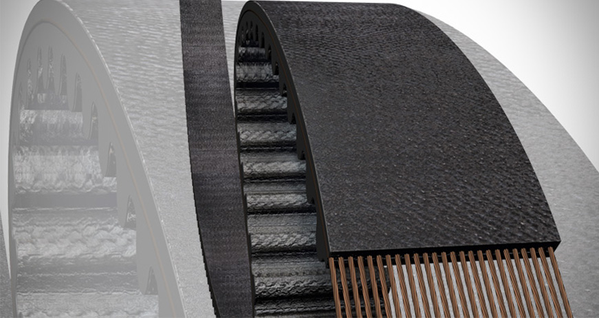 用于在高速条件下实现出色动力传动的重型聚氨酯同步带,内含平衡双丝S/Z抗拉体。> 耐温范围:-30°C至+100°C,取决于应用场合(···
